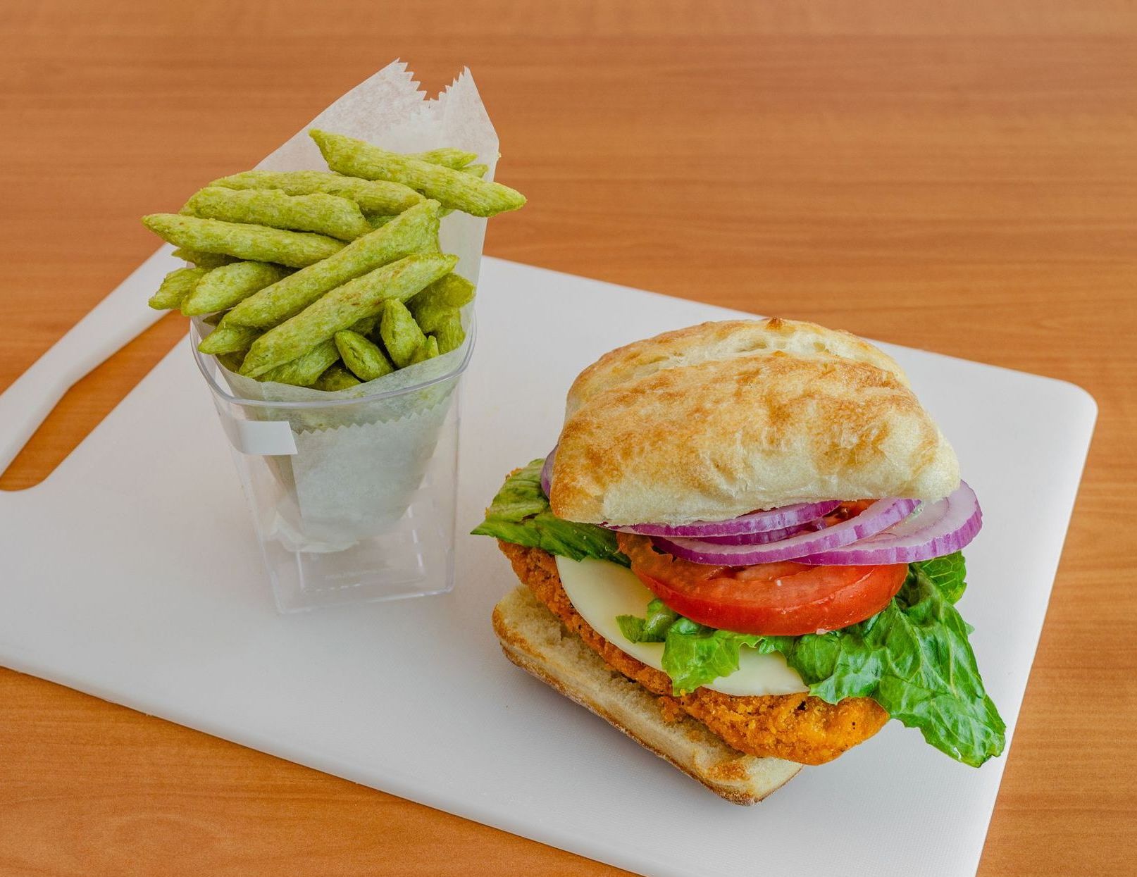 Enjoy a tasty lunch with our fresh wraps, hearty burgers, halal options, and kid-friendly meals, all made with premium ingredients, including 100% organic and grass-fed meat. Choose from a variety of breads like croissant, ciabatta, roll, 9-grain, gluten-free toast, or a whole grain wrap. Add a creamy cheese like white American or provolone, and load up on fresh veggies like lettuce, tomatoes, onions, and pickles. Finish it off with flavorful sauces like bbq, mayo, ranch, chipotle, or honey mustard. Pair it with fries for the perfect bite!